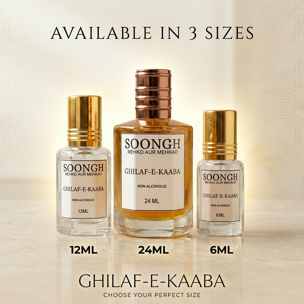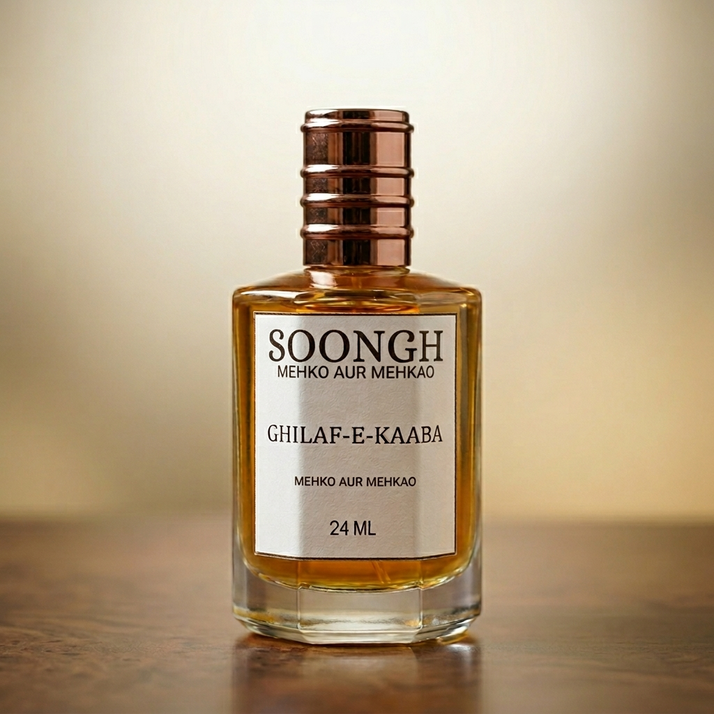 Embrace the sacred and soothing aroma of Ghilaf-e-Kaaba, a signature creation by Soongh. Crafted strictly as a Non-Alcoholic Premium Perfume, this pure concentrated oil delivers a deeply spiritual, long-lasting scent that lingers beautifully from morning to night. Whether for daily wear, quiet spiritual moments, or as a meaningful gift, this fragrance perfectly captures our core philosophy: Mehko Aur Mehkao.
