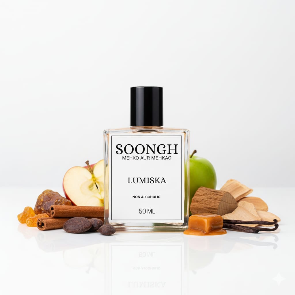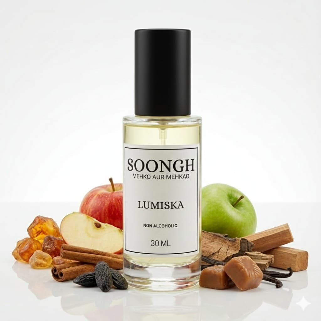 The dry down is where Lumiska truly shines in the Pakistani climate. A warm, creamy finish of Vanilla, Sandalwood, and Amber stays on the skin and fabric for hours, providing a cozy “scent bubble.”
